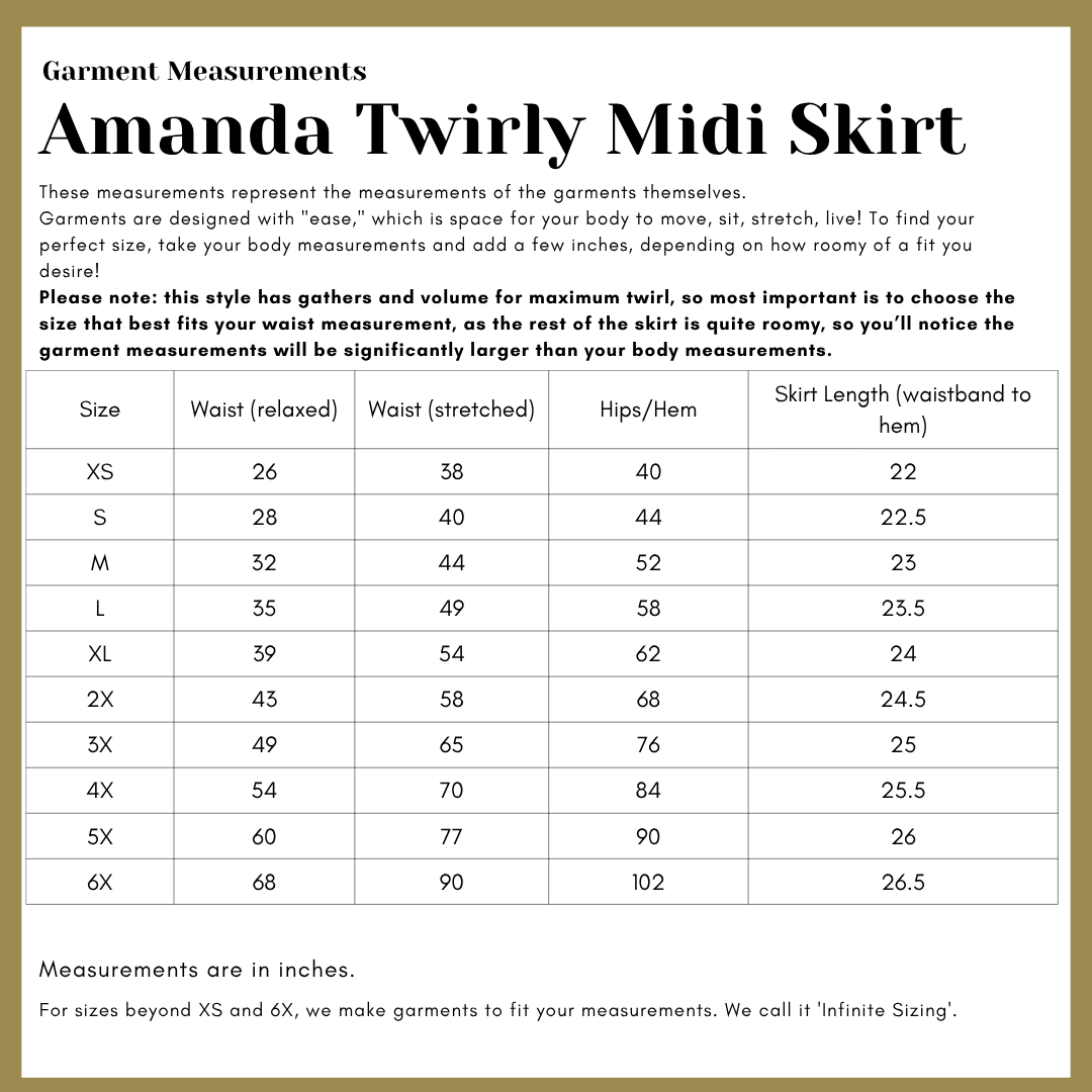 We named it after our friend Amanda, a grade school teacher who knows how to make everyday moments feel special. Like her, this skirt brings energy, ease, and a dash of whimsy to whatever the day holds.