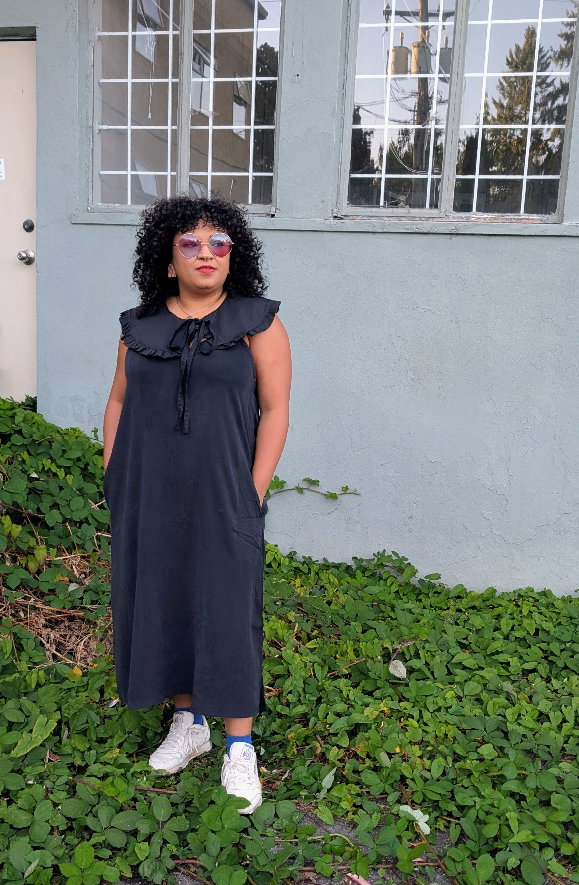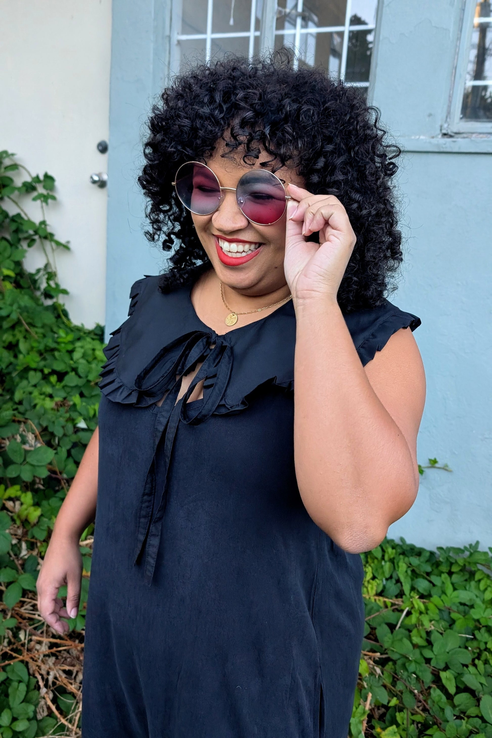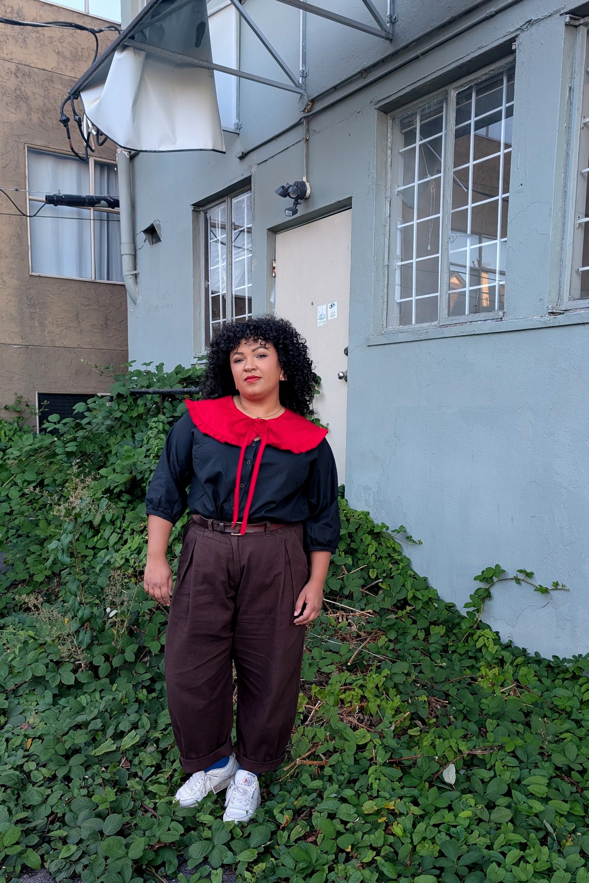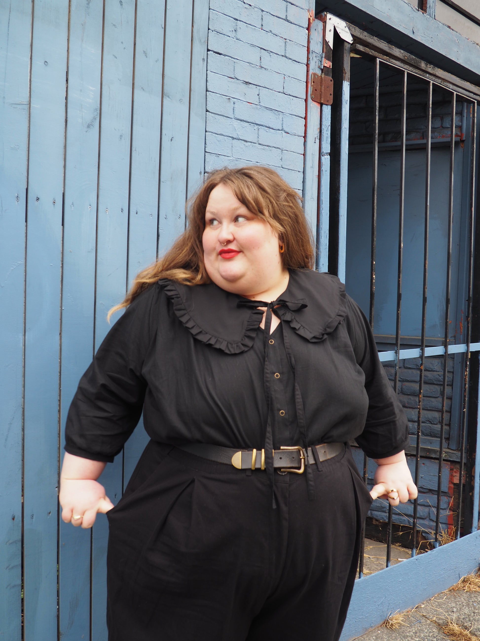 This collar was created first and foremost with plus size folks in mind — plenty of space for the neckline to sit comfortably (no choking, no bunching, no “I can’t breathe in this” energy). It drapes evenly across the shoulders for a polished look, and the front tie-closure makes it adjustable for petite folks, too. Everyone can join the ruffle revolution.