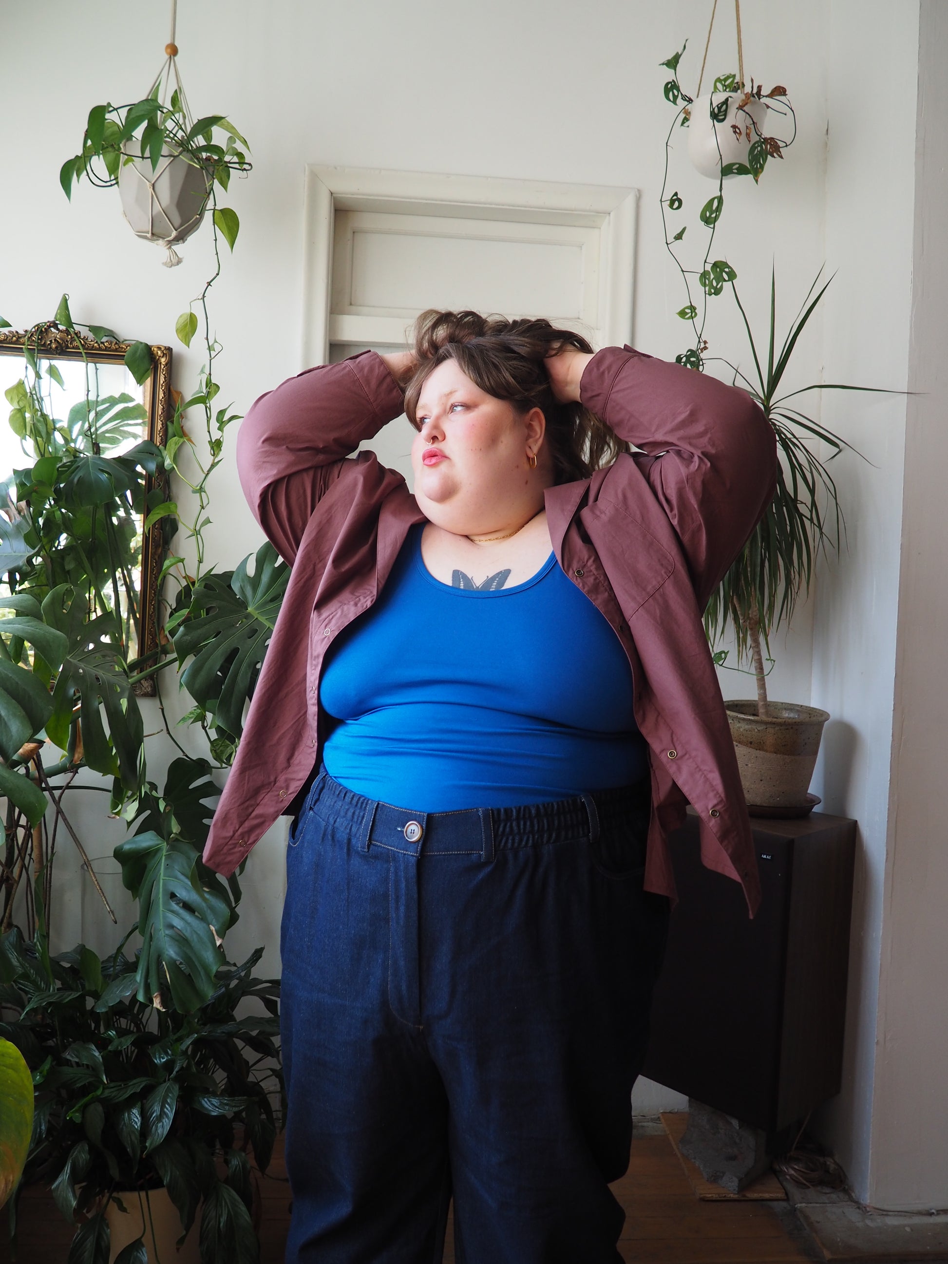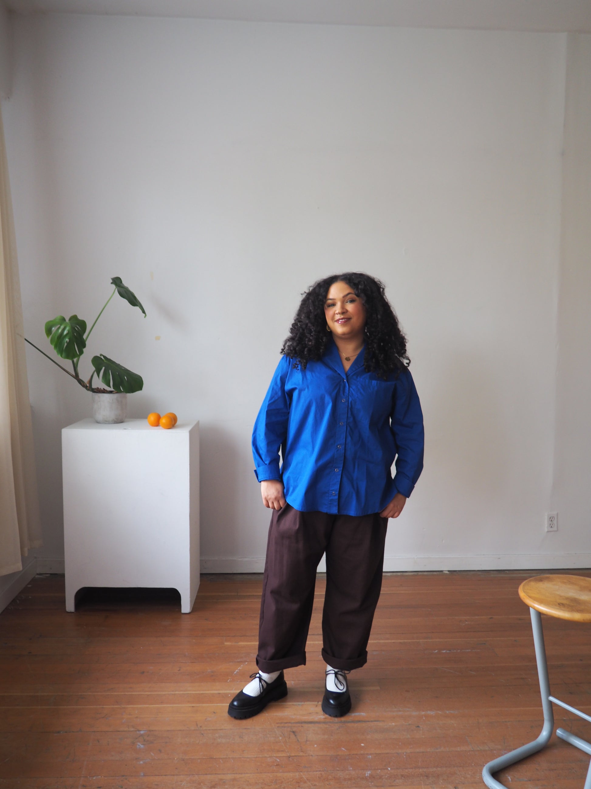 Practical and stylish, the Heather Shirt cleans easily. Machine wash cold, then hang or lay flat to dry for best results. Furthermore, it comes in two versatile shades: Fig and Cobalt Blue, making it easy to pair with your favourite pants or skirts.