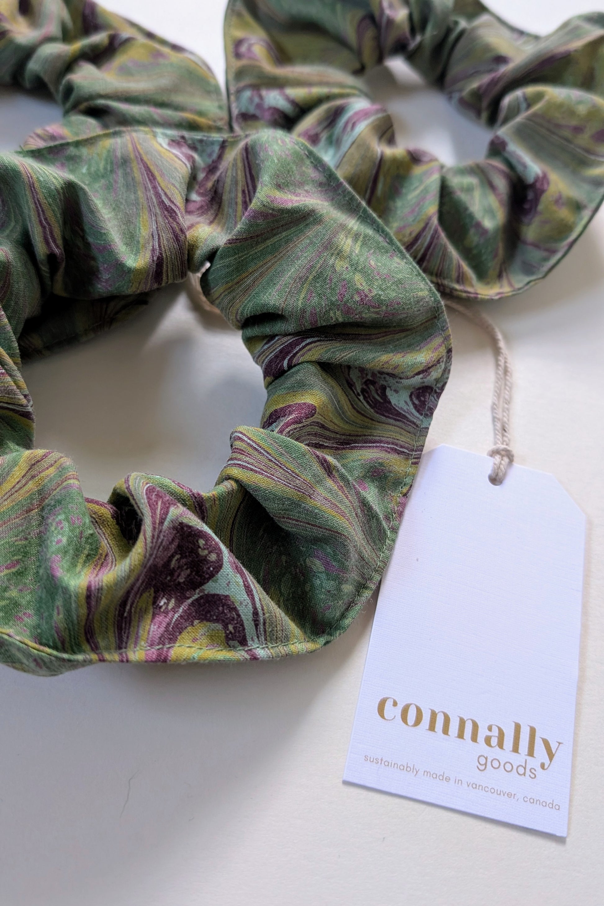 Get ready to turn heads and give your ponytail the main character energy it deserves. The Jumbo Hand-Marbled Cotton Scrunchie from Connally Goods boosts your mood and your outfit. This limited edition stunner is bold, bright, and unapologetic.