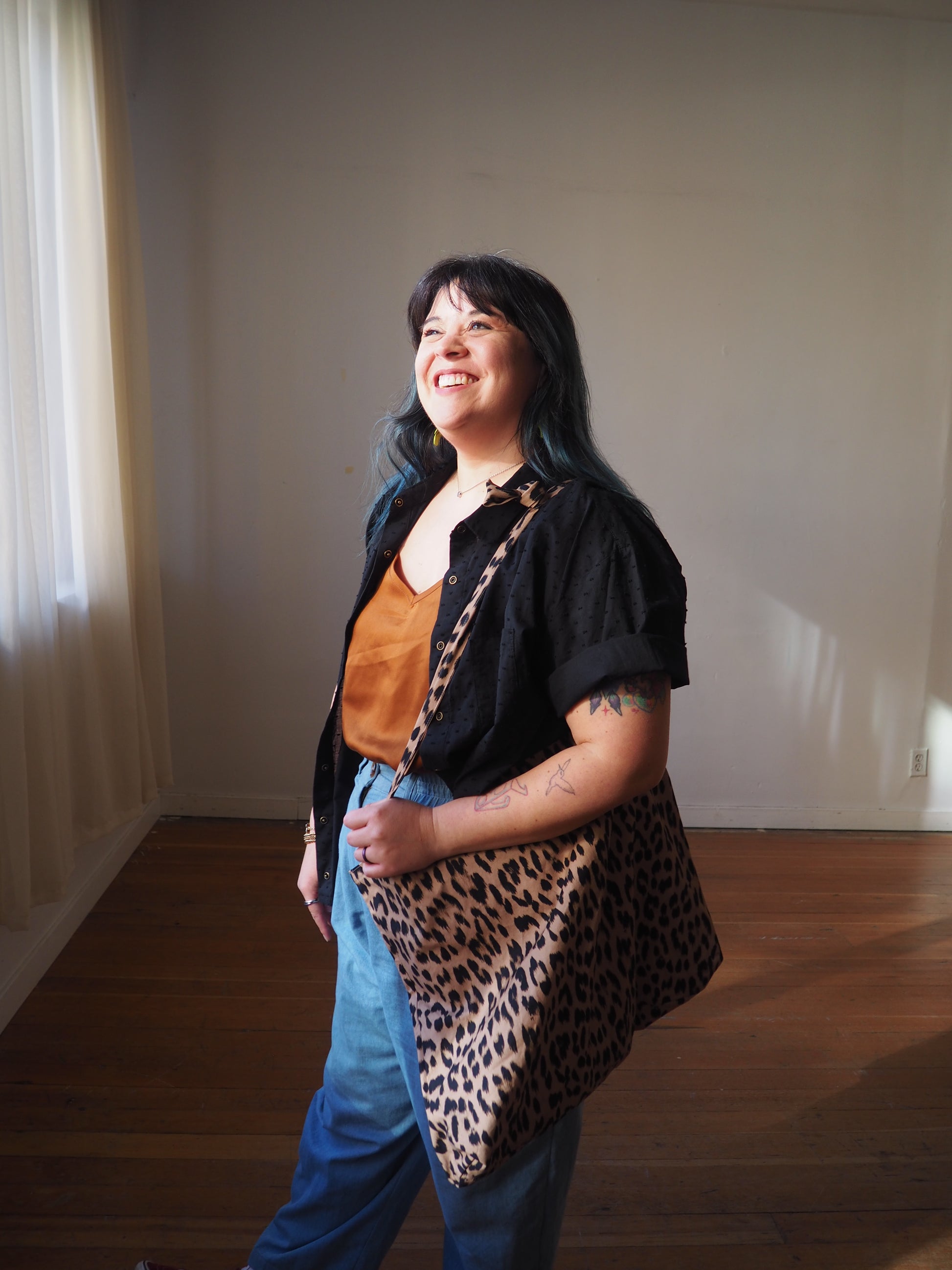 The leopard print tote bags are the first collaboration between Connally Goods and Loud Leopard, and represents all the elements we both love about show-stopping style: impeccable quality, local, micro-batch production, ethical & sustainable fabrics and size-inclusive design. The bag’s strap is intentionally longer so that it can comfortably be worn cross-body for the plus size community (and if you’re petite, it’s easy to make a knot at the top of the strap to shorten it, so it’s truly the bag for everybody!)