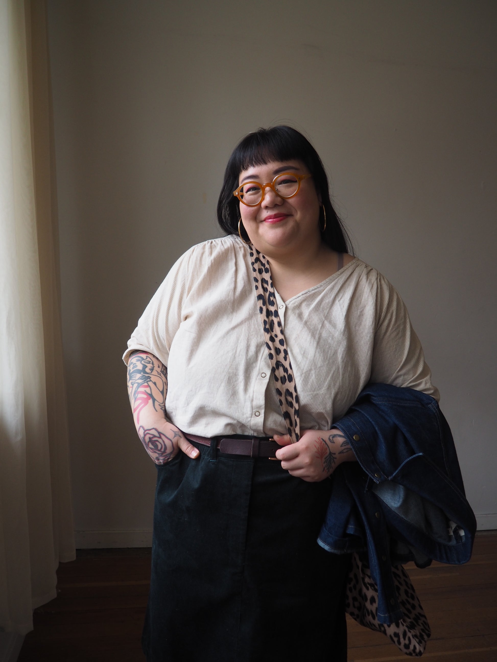 The Margot v neck shirt is entirely Canadian-made and designed to last. Its whimsical details and thoughtful construction make it a practical yet delightful wardrobe essential. It works hard while feeling like a treat to wear.