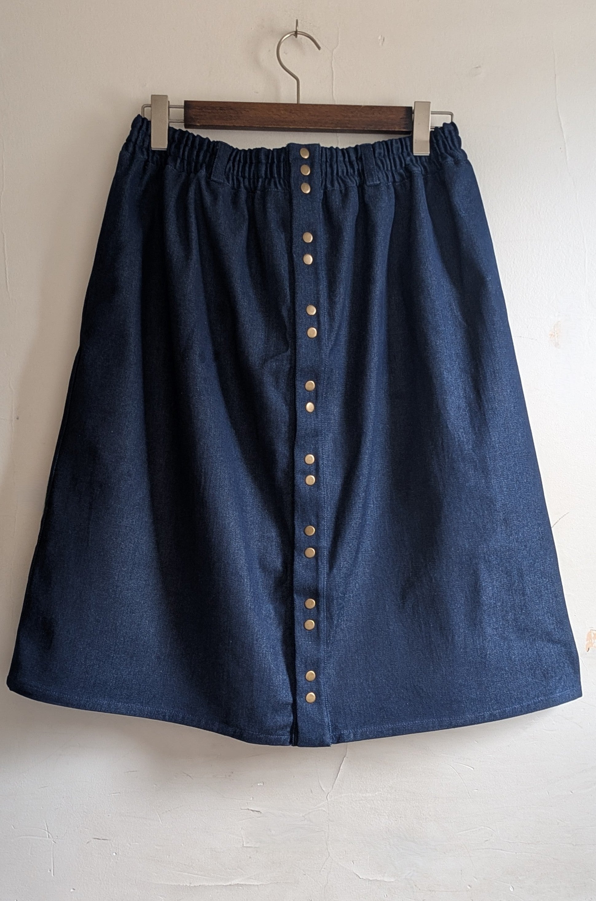 Whether paired with boots and a chunky knit or dressed up with a blouse and tights, the Japanese Raw Denim Sadie Skirt adapts effortlessly to your lifestyle. For example, you can tuck in a shirt or layer with an oversized sweater. Thus, Sadie moves with you wherever your day takes you.